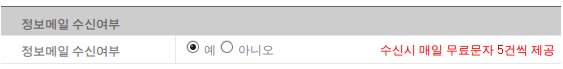 ÅëÅ«¾ÆÀÌ È¸¿ø°¡ÀÔ ½Ã ¸ÞÀϼö½ÅÀ» '¿¹' ·Î ÇØÁֽøé ÀÏÀÏ 5°Ç ÀÌ Á¦°øÀÌ µË´Ï´Ù.