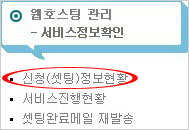 "À¥È£½ºÆÃ°ü¸®" ¸Þ´º Áß ½Åû(¼ÂÆÃ)Á¤º¸ ÇöȲÀ» Ŭ¸¯Çϰí ÀÌÈÄ ³»¿ªÁß¿¡ È®ÀÎÀ» ¿øÇϽôÂ