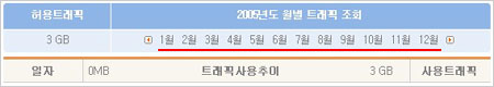 ÇöÀç ¿ùÀ» ¼±ÅÃÇϸé ÇöÀç Æ®·¡ÇÈ »ç¿ë·®°ú ÃÖ±ÙÀÇ »ç¿ë·® ¸ðµÎ È®ÀÎÀÌ