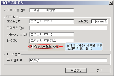 ¼±Åà ÈÄ »çÀÌÆ® µî·ÏÁ¤º¸ Ç׸ñ¿¡ FTP Á¢¼Ó°ú µ¿ÀÏÇÏ°Ô ¾Æ·¡¿Í °°ÀÌ ÀÔ·ÂÇϰí È®ÀÎÀ»
