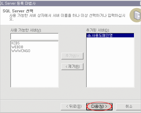 ´ÙÀ½, '»õ SQL Server µî·Ï'À»