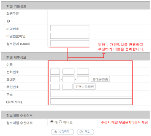 ¨Î ȸ¿øÁ¤º¸°ü¸® -> ȸ¿øÁ¤º¸¼öÁ¤ ¸Þ´º·Î À̵¿ÇÕ´Ï´Ù.